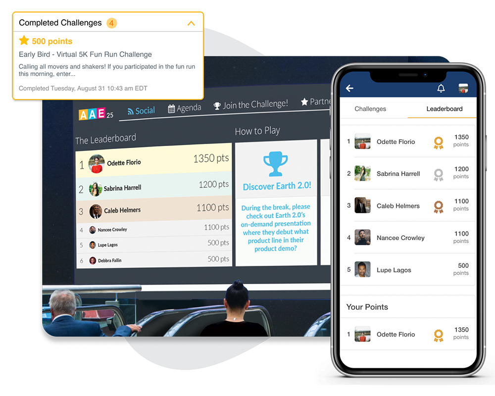 Influence attendees' behavior through fun, friendly challenges designed to drive new learnings and connections.